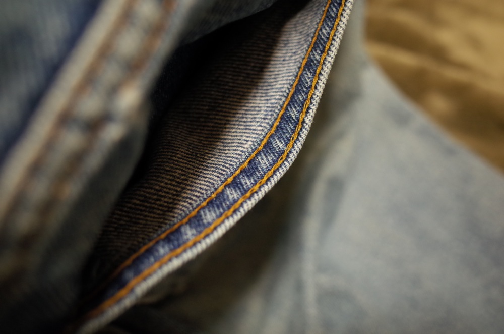バックポケット、コインポケット共にうらはダブルステッチ。