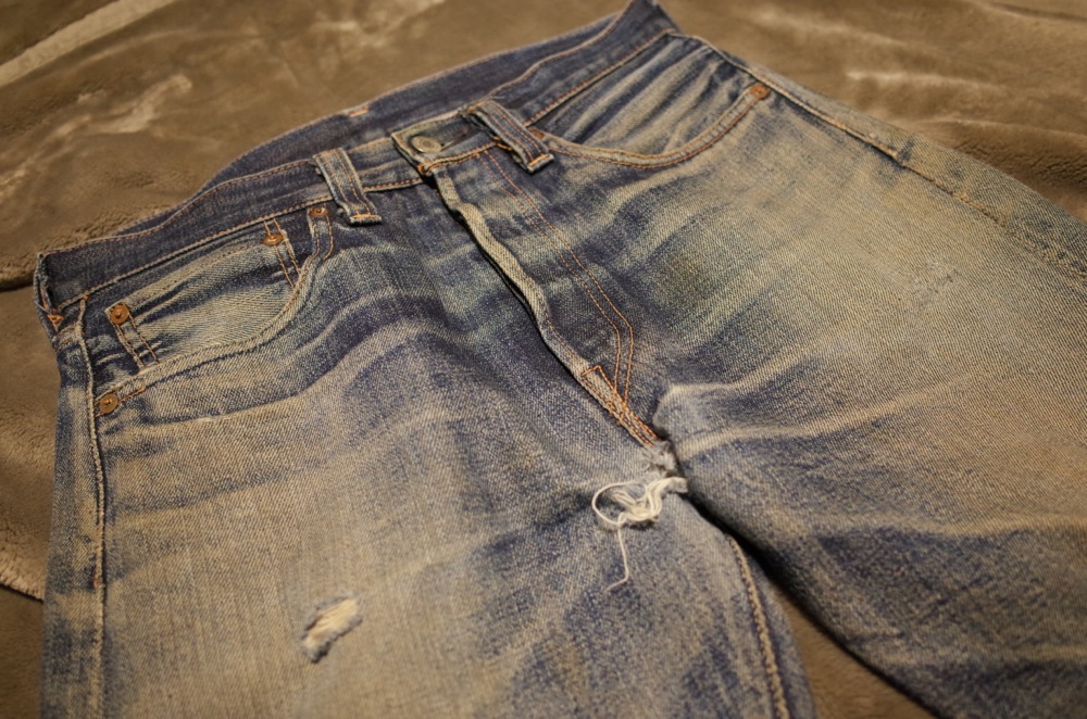2016 03.30 友人ponda氏のLevi’s 501xx 1947 色落ち Posted:2016.03.30 / Category:ジーパン,ジーパン,LVC 47501XX japan 以前記事に書いた僕の47501と同じ日本製47501を友人ponda君が履いていた(現在は引退済み)ため撮影させてもらいました。 ponda君はなかなかアバンギャルドな奴でして、とにかく服を洗濯しないのです。 いっさいしない訳ではないですが、普通の人間の感覚では考えられない洗濯頻度です。 デニム界には「根性履き」という言葉があるらしいですが、ponda君は根性履きとかではなく、 … Read more