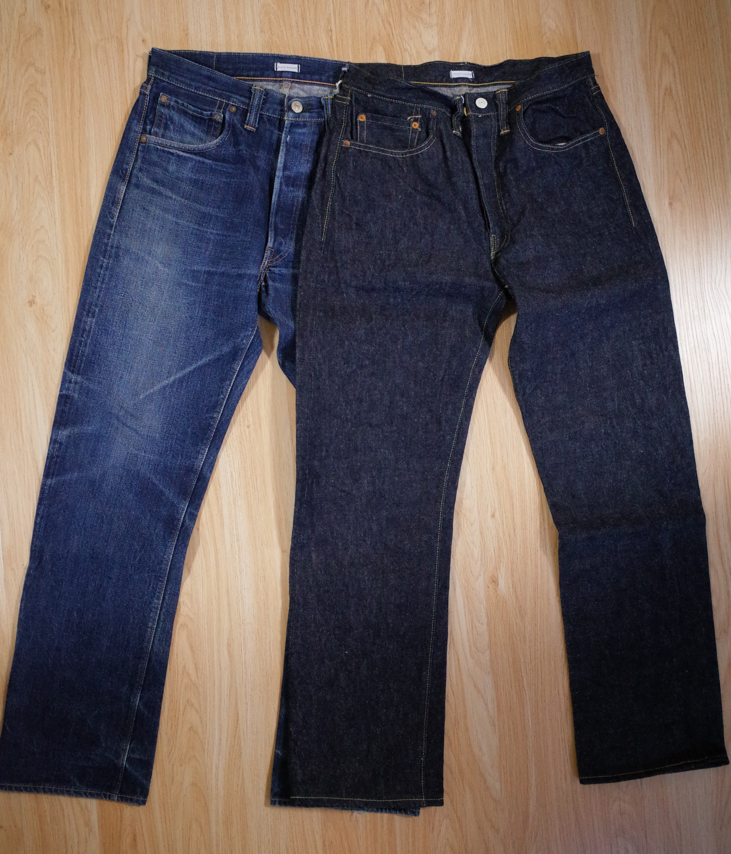 1001xxは定番のバナーデニム(13.5ozくらい)だから想像通り全然ちがう。